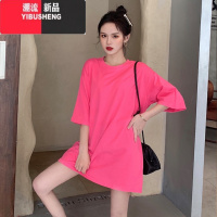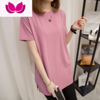 七斓2023新款夏季女装上衣宽松大码中长款女士t恤妈妈休闲长款短袖衫