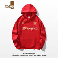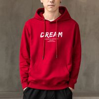 YANXU酒红色连帽卫衣男秋季痞帅外套日系复古简约字母印花套头上衣