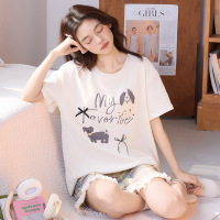 浪莎睡衣女夏季纯棉薄款短袖短裤可爱夏天休闲可外穿家居服两件套