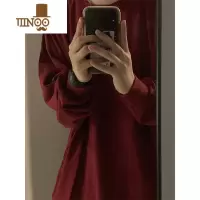 YANXU新疆长绒棉暗酒红色t恤男长袖古着vintage卫衣薄款美式小领口秋衣
