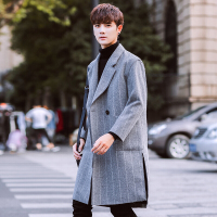 步来褶惠2017秋冬季男士风衣中长款外套韩版修身毛呢大衣潮男装夏