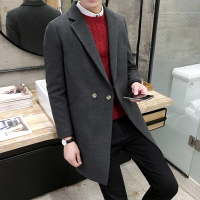 步来褶惠秋冬季男士风衣韩版宽松版双排扣长款毛呢大衣男外套潮F219灰色夏