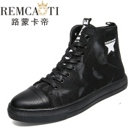 欧洲站高帮鞋男侧拉链个性板鞋青少年鞋子男潮流街舞鞋发型师潮鞋黑色