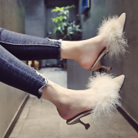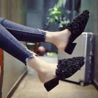 SUNTEK一体跟女鞋新款凉鞋女皮面拖鞋亮片女拖休闲凉拖粗跟高跟透气百搭