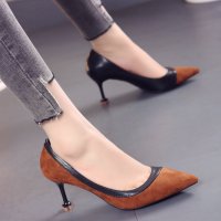 拼跟高跟鞋春季2018新款女百搭千鸟格女鞋细跟尖头单鞋女春秋