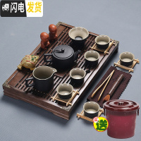 三维工匠紫砂陶瓷功夫茶具套装家用茶杯简约办公实木小茶盘抽屉式茶台整套 黑色小兰香+豆绿色哥窑古壶茶具 21件