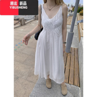 YIBUSHENG季一整套高级感双肩带连衣裙白色防晒衬衫短款外套搭配吊带长裙