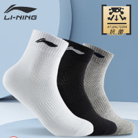 李宁袜子运动袜四季(3双)篮球袜跑步袜男女休闲棉袜黑白灰