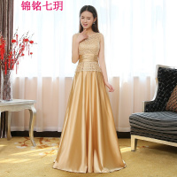锦铭七玥晚礼服2017新款长款夏女士金色晚礼服裙修身优雅宴会晚装长裙显瘦