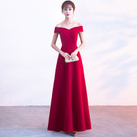 一字肩新娘敬酒服2017新款时尚秋冬季优雅公主长款结婚晚礼服裙女