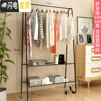 三维工匠卧室落地凉衣架室内单杆式晾衣杆挂衣服架子家用晒衣架折叠晾衣架 舒享版加大100cm黑[双层置物网] 1个