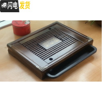 三维工匠小茶盘家用储水式抽屉功夫茶具实木托盘石头茶托套装茶海茶台简约 厚德载物四方盘黑