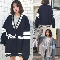 加肥加大码秋装韩版V领外套200斤胖mm超大号宽松显瘦学生棒球服女