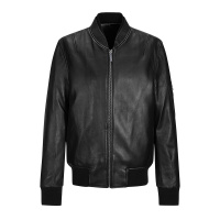 【新款尚新】皮衣夹克男春天新款棒球衫绵羊皮机车服外套B1BD71108黑色CYDDWQE