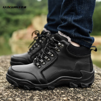 卡帝姗冬靴东北雪地靴男士短靴高帮男鞋保暖鞋登山鞋军勾加绒厚棉鞋男真皮户外靴子