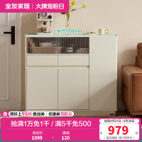 全友家居奶油风靠墙收纳储物玄关柜客厅隔断小吧台置物柜子