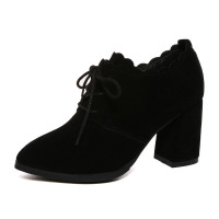 2017新款秋尖头鞋2017秋季新款英伦风复古系带粗跟高跟磨砂小皮鞋百搭女鞋