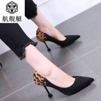 欧美秋季新款高跟单鞋女绒面豹纹马毛细跟高跟鞋时尚性感尖头鞋女
