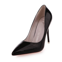 欧美裸色高跟鞋细跟尖头鞋性感黑色漆皮工作鞋女单鞋10cm红色婚鞋