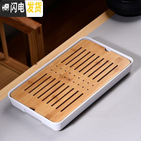 三维工匠功夫茶具简约茶盘家用储水日式圆形竹制密胺干泡托盘大小茶台 密胺中长方祥云白茶盘32cm