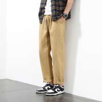 男士休闲裤修身直筒松紧腰裤子长裤秋冬仿牛仔面料男装新