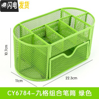 三维工匠创意可爱桌面分笔筒韩国北欧个性桶时尚少女格铁艺摆件小清新收纳 9格-绿色