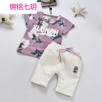 锦铭七玥韩版小花男童短袖套装2017夏款童装纯棉新款儿童中裤套装