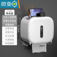 敬平卫生间纸巾盒厕所厕纸置物架洗手间卫生纸抽纸卷纸免打孔防水壁挂 升级款-月光白[24cm超大出纸口+免打孔⭐️双层收纳