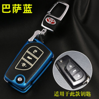 丰田汉兰达皇冠凯美瑞新卡罗拉钥匙包雷凌双擎锐志兰德酷路泽普拉达RAV4锁匙套扣丰田折叠3键巴萨蓝壳+钥匙扣