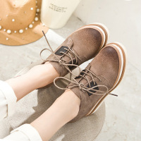 O女鞋新款内增高单鞋女磨砂皮复古系带休闲鞋厚底松糕低帮鞋