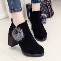 二棉鞋女2017新款短靴女尖头鞋粗跟及踝靴加绒保暖磨砂裸靴女鞋子