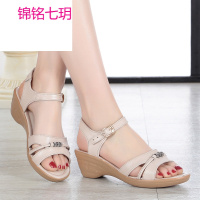 锦铭七玥夏季新款真皮坡跟妈妈凉鞋舒适软底大码平底防滑中凉女鞋414243