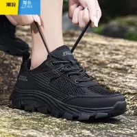 聚范男鞋夏季2024新款旅游鞋子透气男士网面全黑色休闲运动鞋男款防滑