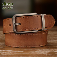 JEEP吉普棕色真皮针扣皮带男复古牛皮休闲年轻人裤带男士新款腰带