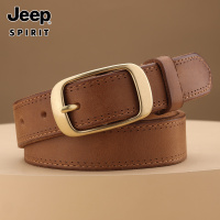 JEEP吉普正品女士皮带真皮头层牛皮宽腰带女针扣简约百搭裤带时尚