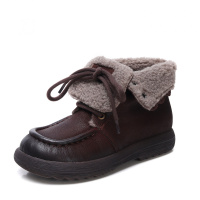 头层牛皮女雪地靴冬季新款保暖百搭防滑羊羔毛两穿复古短靴