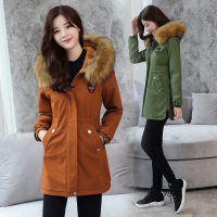 莞馨2017冬装韩版大毛领军绿色加绒棉服女中长款连帽大衣加厚收腰棉衣