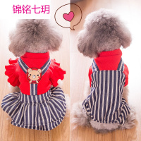 红色条纹宠物情侣装四脚衣狗狗新年装泰迪博美衣服幼犬裙子秋冬装