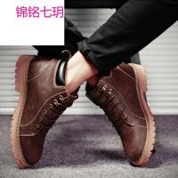 锦铭七玥户外男士休闲马丁靴高帮短靴大头皮鞋厚底秋季英伦复古工装男鞋潮