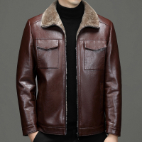 正品男装春秋中老年真皮皮衣男加绒加厚外套男士皮夹克爸爸装冬装袄官方旗舰店特卖特卖