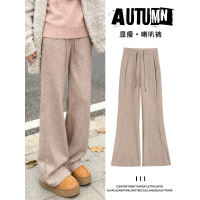 加绒微喇叭裤子女新款秋冬垂感休闲小个子燕麦色羊毛呢糯米裤