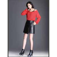 新款显瘦休闲皮裤裙韩版修身大码PU皮裙裤女包臀皮短裤女秋冬黑色