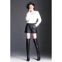 明星海宁真皮短裤女阔腿裙裤绵羊皮宽松百搭韩版显瘦靴裤皮裤