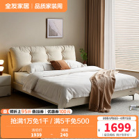 全友家居奶油风布艺床新款主卧室猫抓绒布云朵软包双人大床