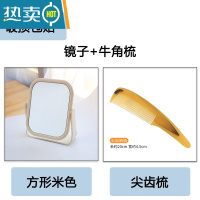 敬平创意简约台式化妆镜欧式高清双面浴室梳妆镜便携宿舍桌面旋转镜子 浅灰色便携式用镜