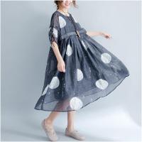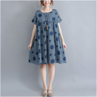 大码女胖mm夏装新款文艺波点印花短袖藏肉遮肚子连衣裙大摆a字裙
