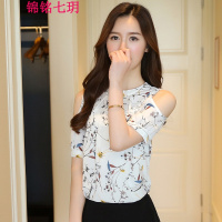 锦铭七玥露肩上衣半袖性感显瘦遮肚子打底衫2017夏装新款碎花雪纺衫短袖女
