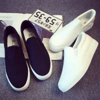 男鞋春秋新款休闲鞋男士厚底小白鞋黑白经典帆布鞋低帮懒人鞋