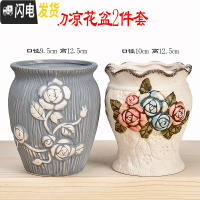 三维工匠多肉花盆大号老桩高盆大口径老庄植物创意简约陶罐粗陶陶瓷小花盆 初凉花盆2件套 中等花盆容器