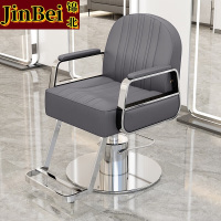 锦北理发椅美发凳发廊专用升降可放倒剪发椅深灰色银不锈钢圆盘(粗泵)